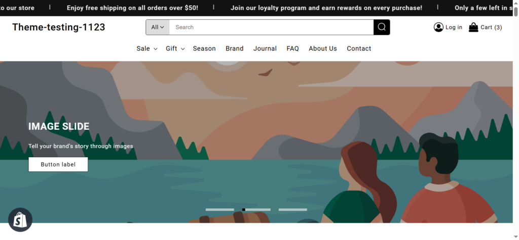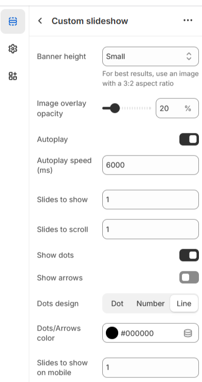 Each slide can include a heading, subheading, and a call-to-action button linked to a collection, product, or page.